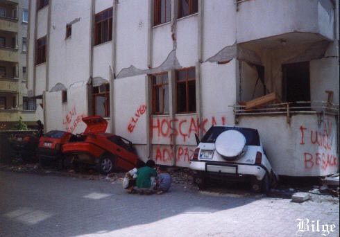 2001 yılında üniversitedeki bir grup arkadaşla çıkardığımız Bilge Dergi adlı bir online derginin ağustos sayısının kapak konusunu depreme ayırmıştık. Ben de çekip bastırdığım tüm fotoğrafları tarayarak dergiye eklemiştim. Neyse ki derginin kopyası elimdeymiş ve benim için çok değerli olan (aslında geçen zamana bakınca artık tarihi belge değeri de olan) bu fotoğraflara ulaşabildim (Dergiyi de bir fırsat bulunca tekrar yayına koymak istiyorum, arşiv olarak).